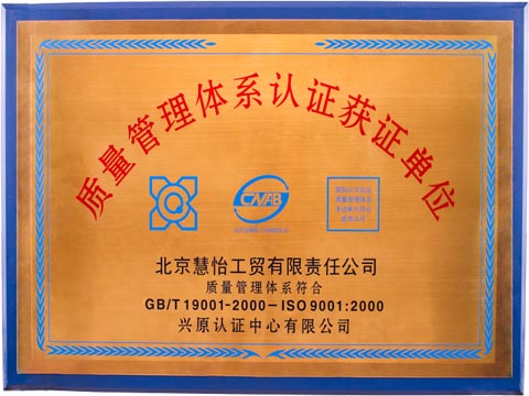 近日,北京慧怡科技有限责任公司在中国质量检验协会组织开展的全国质量月企业质量诚信倡议专题活动中荣获全国质量诚信标杆典型企业证明。公司连续多年通过ISO9001:2000质量管理体系认证,ISO9000国际质量认证用于证实组织具有提供满足顾客要求和适用法规要求的产品的能力,目的在于增进顾客满意度。