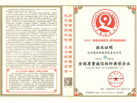 慧怡荣获“全国质量诚信标杆典型企业”称号