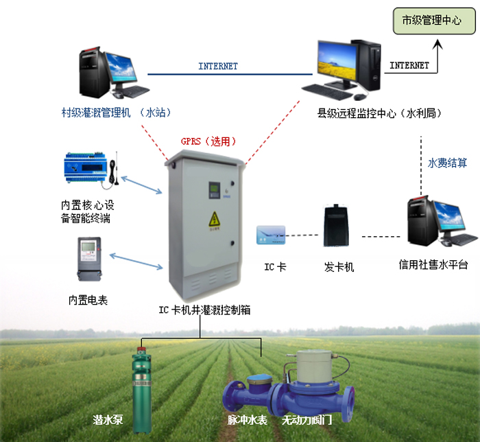 农田灌溉水资源控制器实则是一个集中器,适用于农田灌溉项目, 农田灌溉水资源控制器是IC卡智能终端集预付费、流量监测、余额提示、欠费停机、远程传输监控、实时召测、定时上报、终端异常报警、异常上报、远传控制水泵、阀门等多种功能于一身,并且整个设计完全按照工业级的要求,具有抗干扰能力强、性能稳定、兼容性好、用户使用方便等特点。改变了多年来农业灌溉用水计量按用电量或按亩收费、水资源无序采取的现状;建立起用水户主动参与灌溉管理的运行管护机制。