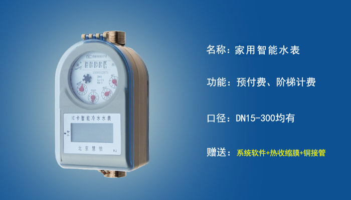 家用智能水表是小区家庭常用的一款预交水费型水表,分为干式水表和湿式水表,此智能水表为一体式,一户一表一卡,采用了翻盖设计,主要用于计量家庭或一个居民单元流经自来水管道中的饮用水的体积总量。凭卡用水,卡中数据输入表中,水表自动开阀供水,用完后自动关阀断水,须重新购水,方能重新用水。IC卡还能记录表的运行情况,在管理机或管理软件下将表的总用水量、总购水、开关阀状态等信息进行管理。智能水表可以提高管理效率,防止欠费,避免上门抄表,实现节约用水。
